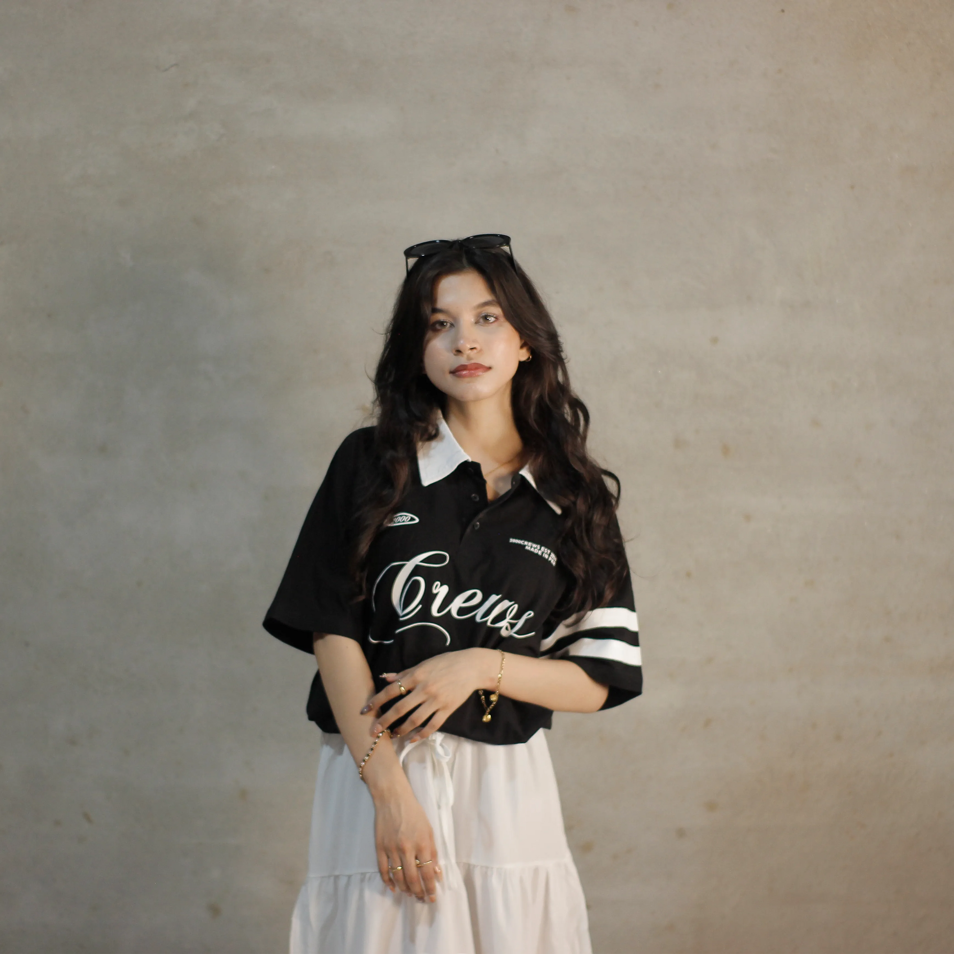 ‘Blackmatch Polo’ brings varsity structure with clean twin sleeve stripes and an embroidered Crews script across the chest. Minimal, sharp, and built like a staple from a forgotten athletic dynasty