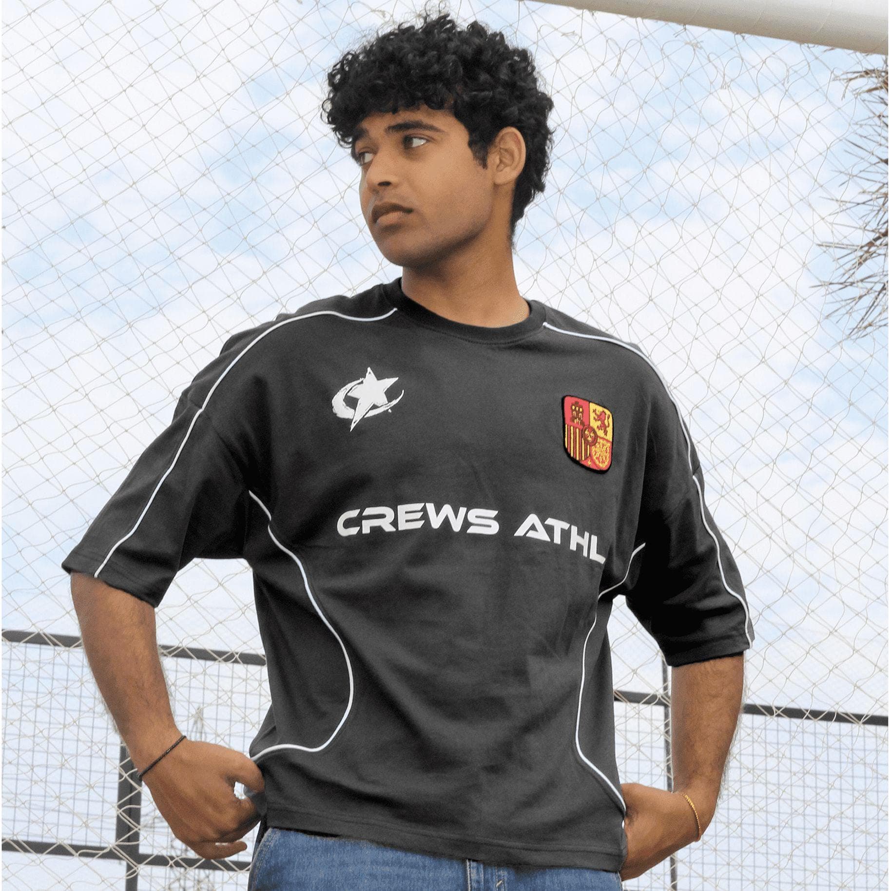 The 2000crews oversized athletic jersey blends performance with streetwear, featuring a bold embroidered crest and sleek white piping. Crafted from premium fabric, it offers a structured yet relaxed fit. A statement piece built for both sport and style.