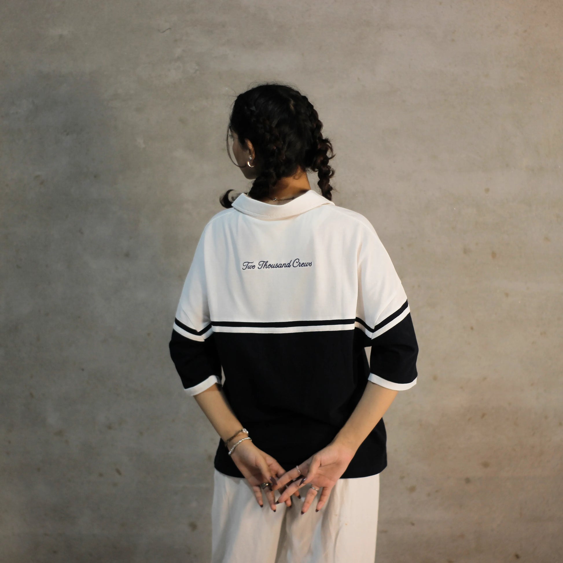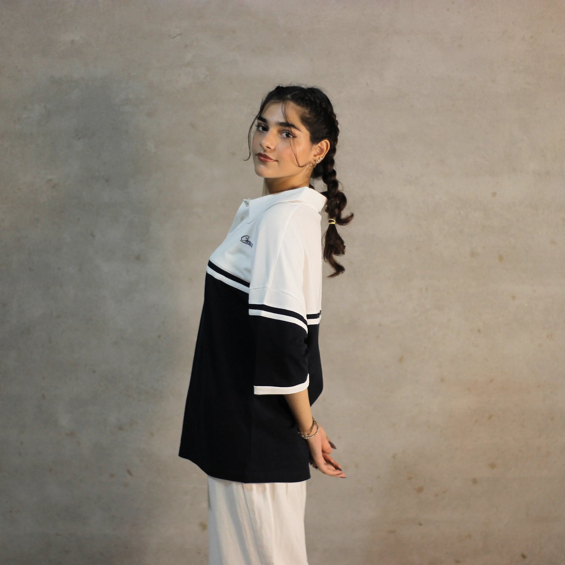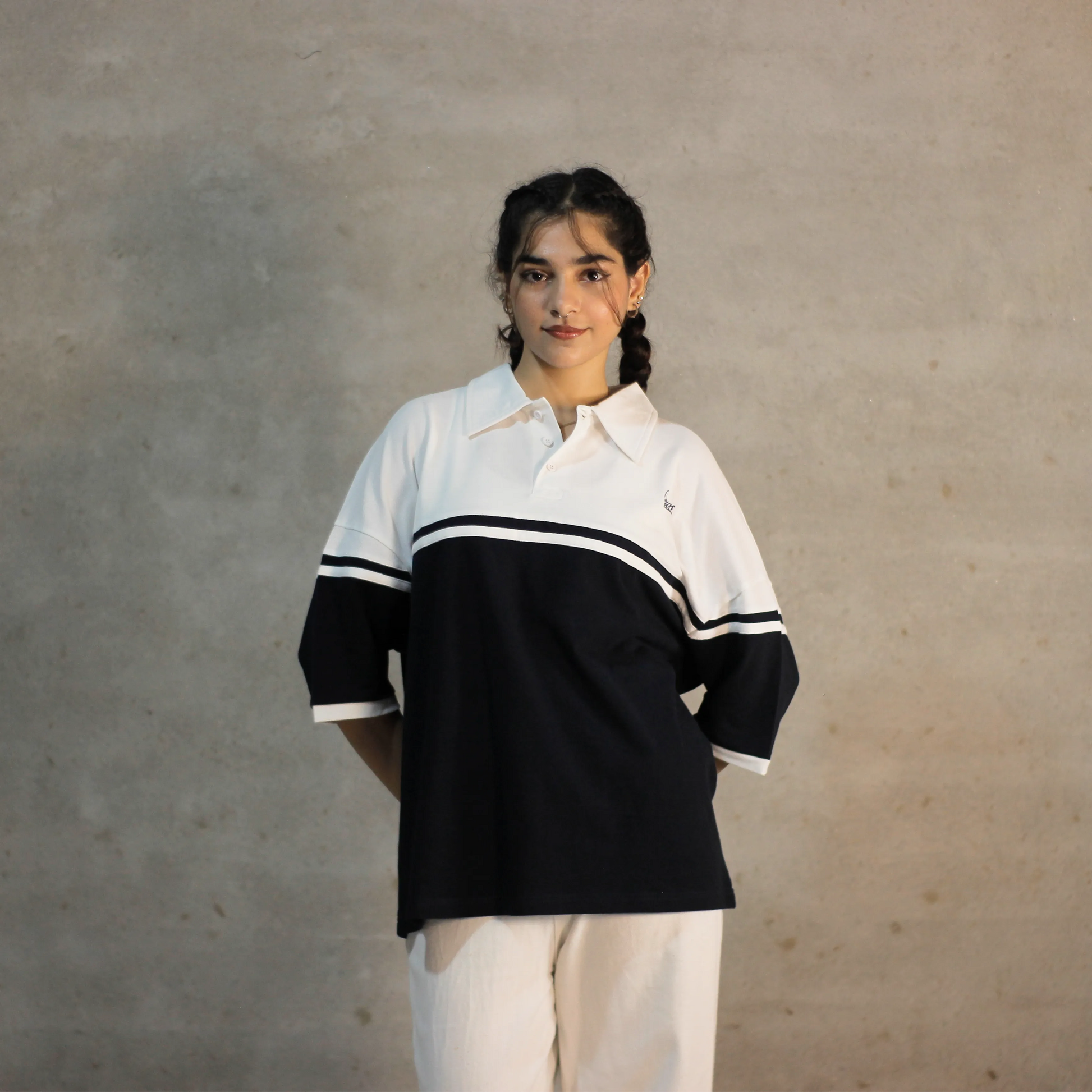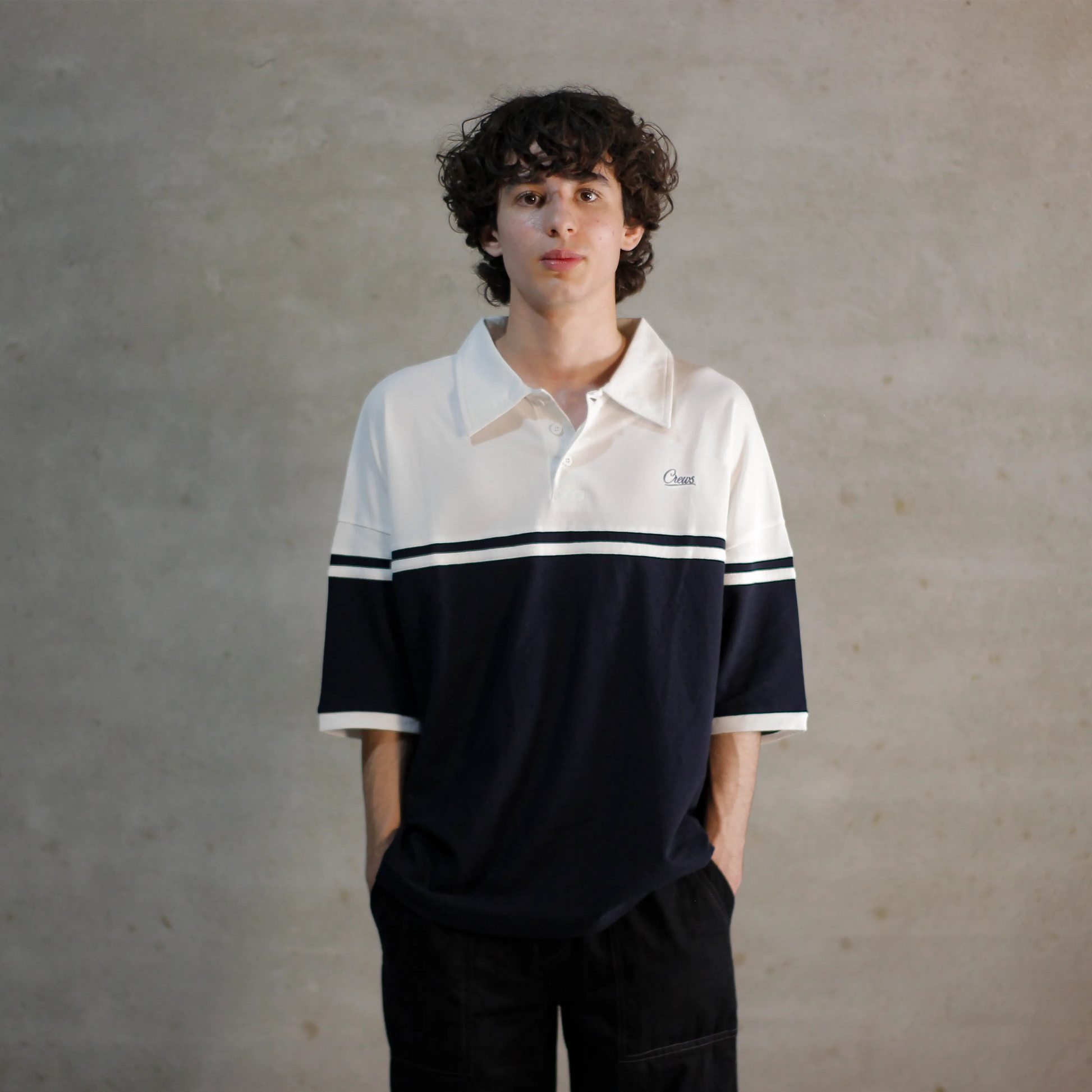 Subtle, structured, and effortlessly elevated. ‘Club Ivory’ blends rich two-tone contrast with varsity stripes and a soft collared build. Crafted in breathable cotton pique, it wears like you just stepped off a private jet.