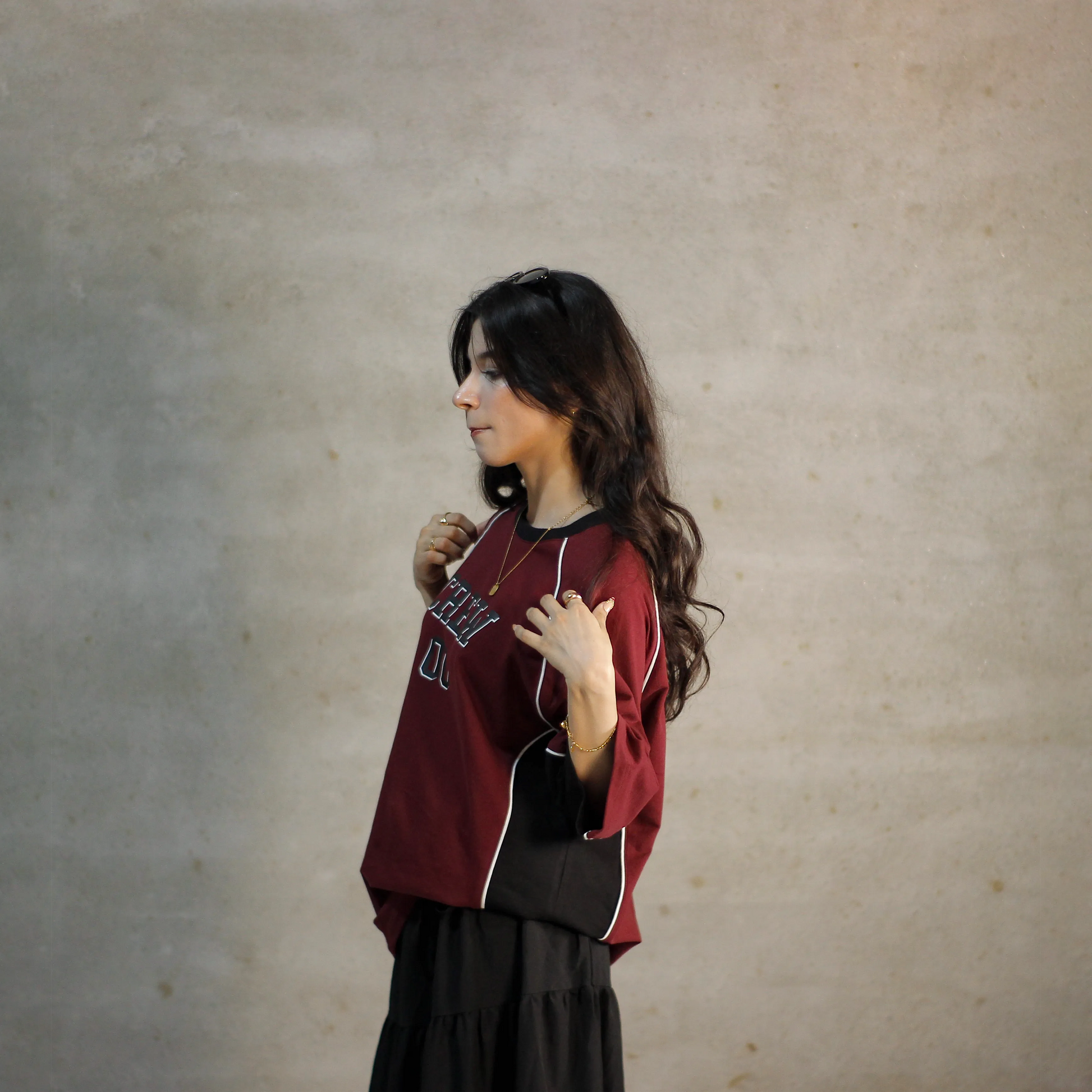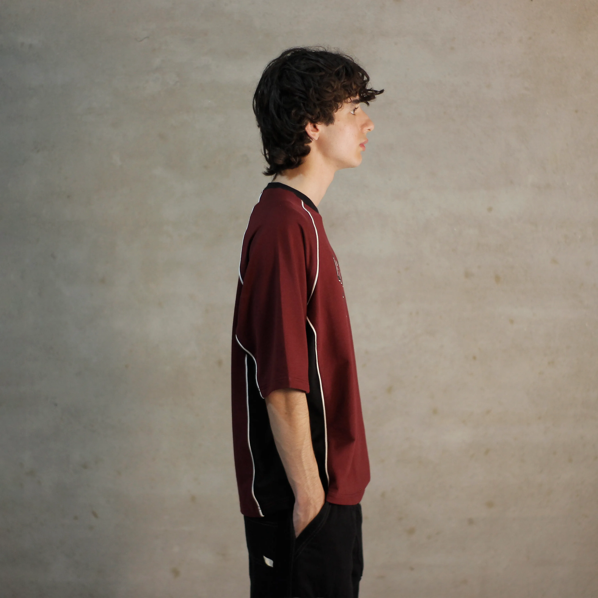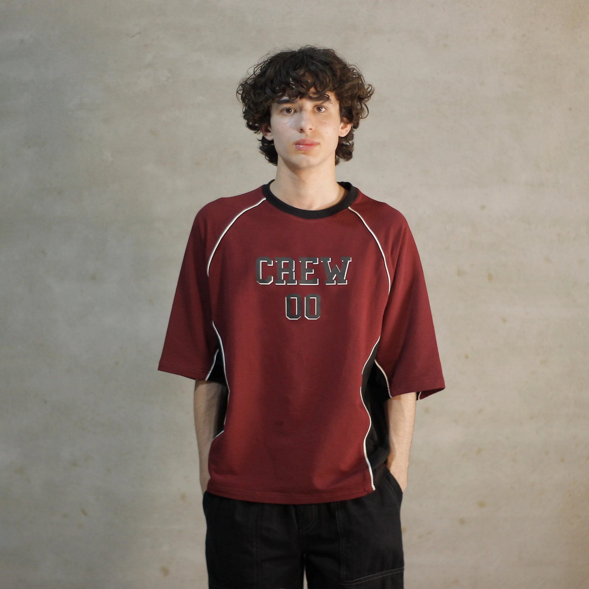 Varsity meets speedwear in this paneled cotton tee. Contrast piping and “CREW 00” hit bring early-2000s track energy. Built for clean structure and standout presence.